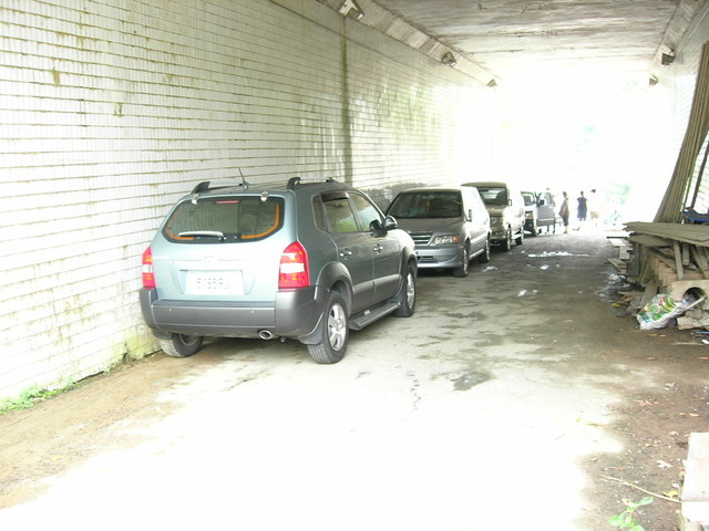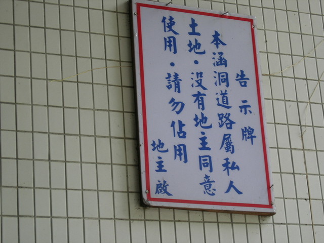 因為涵洞壁上貼了一張紙,說這涵洞通道是私人土地,但我們還是不想去停一次收費一百元的停車場,把車子開到好遠的道路白線旁停車。