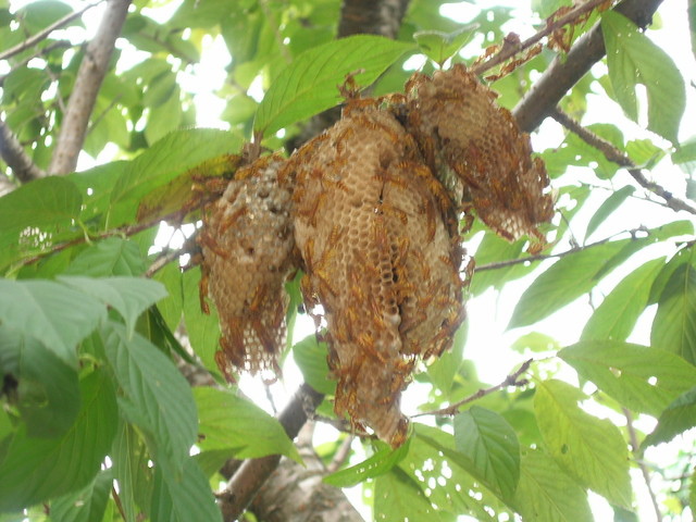 路旁的蜂巢,不知道是什麼蜂。