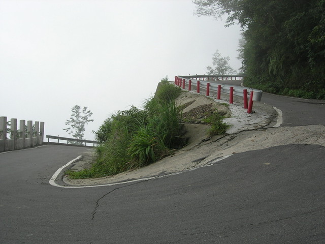 迴轉一百八十度的髮夾彎,往宇老的路況不佳,柏油路上有許多大坑洞。