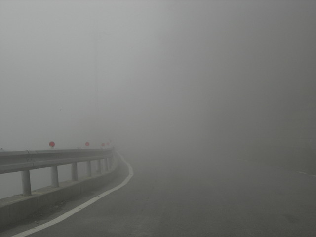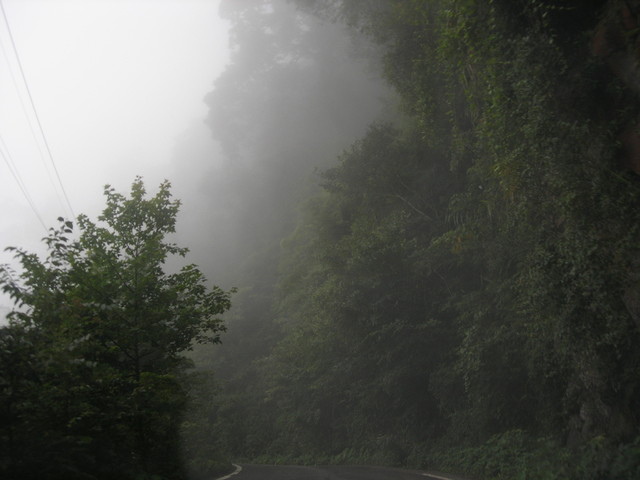 起霧了,有一小段路下雨。