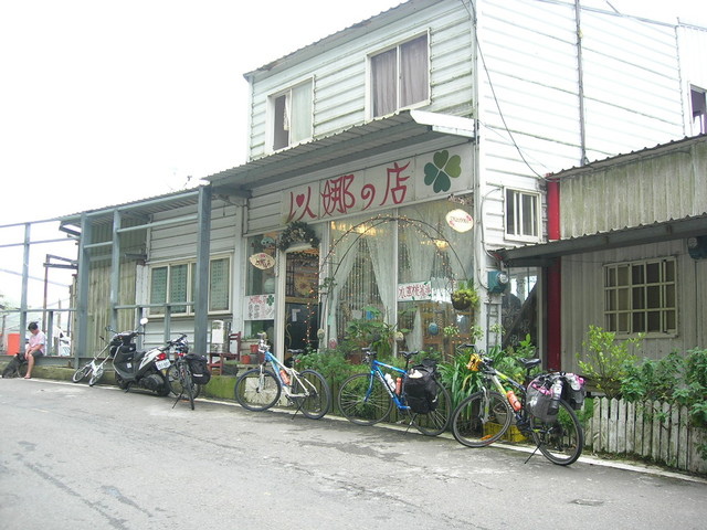 宇老到了,知名的「以娜的店」,停了四輛單車,還有兩位車友在騎上山途中。