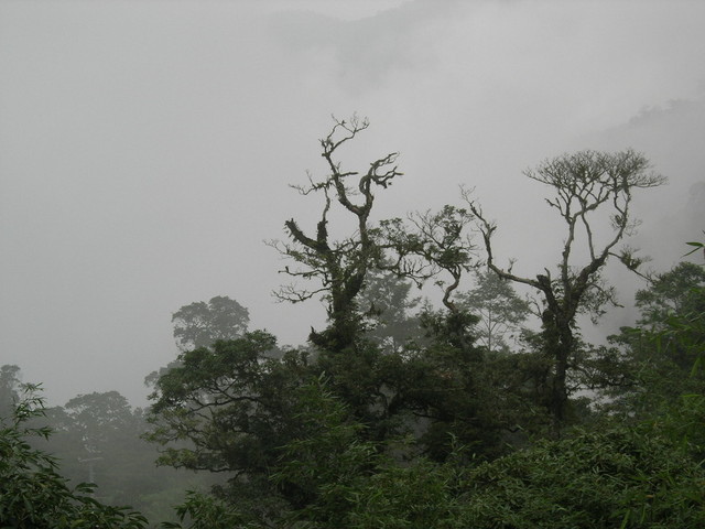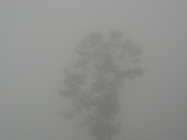 在霧中的樹影。