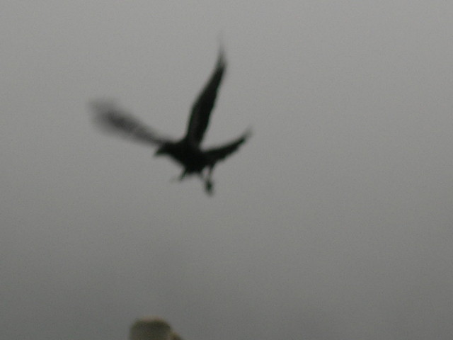 拍到舞動雙翅的烏鴉。