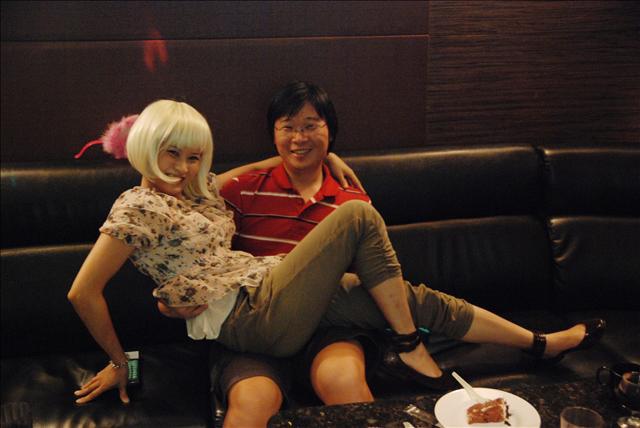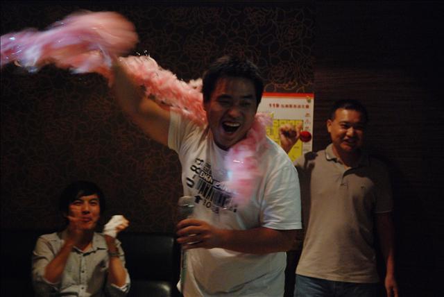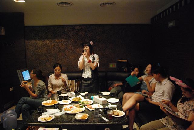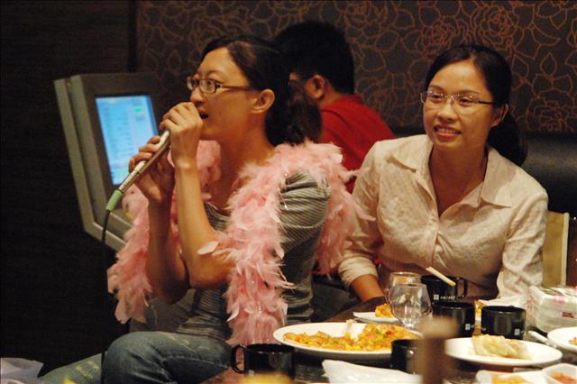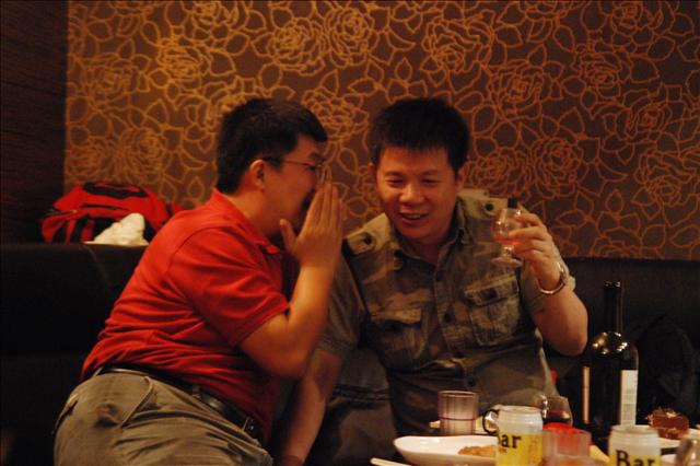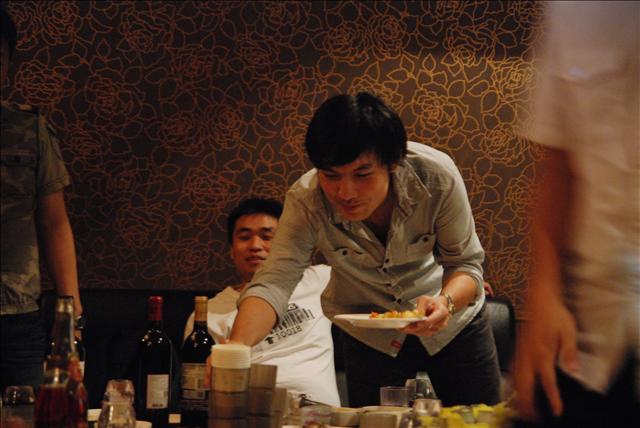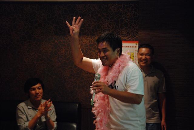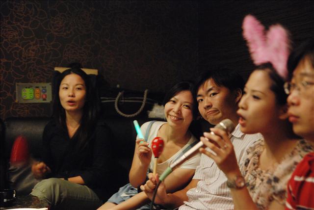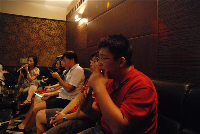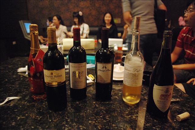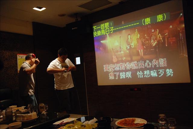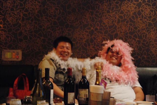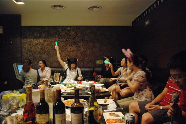 因為生日,所以唱歌、聚會、小酌,本日備酒有凱西帶來的香檳、紅酒,我帶的「R」,小胖帶的「劈腿」,小查的白酒「拉楓索甸」跟紅酒。