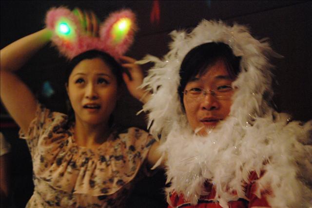 唱歌要有道具:假髮、貓耳、兔耳、鈴鼓、搖鈴、羽毛披肩都備齊了。