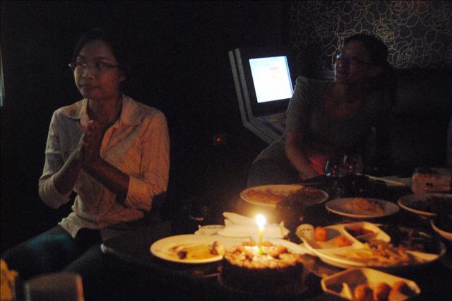 關燈,為本日壽星:兔美、小冰唱生日快樂歌,壽星許願。