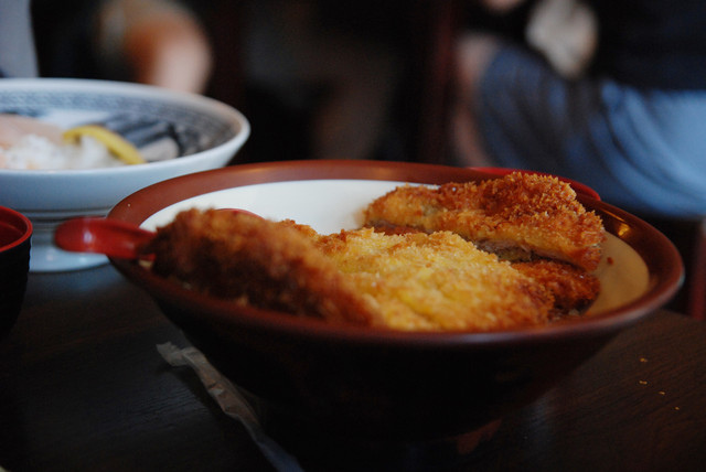 跟隔壁桌客人借豬排飯拍照,角度沒有調整好,拍不出比臉還要大的豬排全貌。