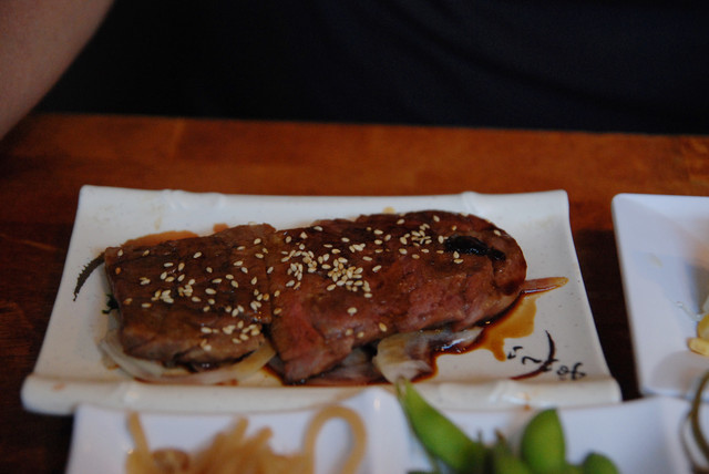 小胖點「烤牛小排定食」,醬料太甜,不合小胖的口味。